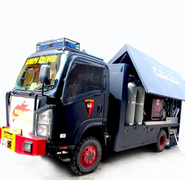 Sistem pengolahan air bersih portabel yang terintegrasi dengan kendaraan multiguna, ideal untuk operasi lapangan, bantuan bencana, dan daerah terpencil.